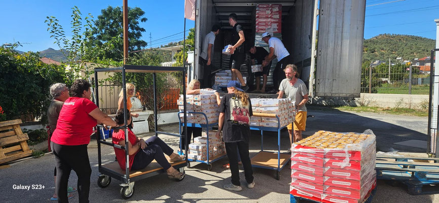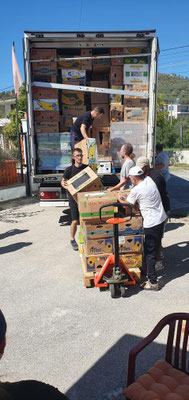 Alles in allem und mit Hilfe von 20 Leuten, vor allem aber durch die Unterstützung meiner Stieftochter Maria, die quasi die ganze Zeit (drei volle Tage) mit mir umher gefahren ist und überall als Übersetzerin geholfen hat, konnten wir die Verteilung in gerade mal drei Stunden abwickeln, nachdem der Lkw nach zwei Tagen den Hafen verlassen durfte. Dadurch konnten die Fahrer noch rechtzeitig abends auf ihrer Fähre nach Bari sein.